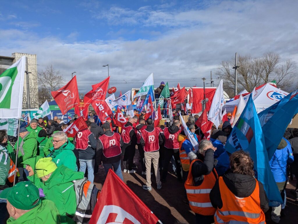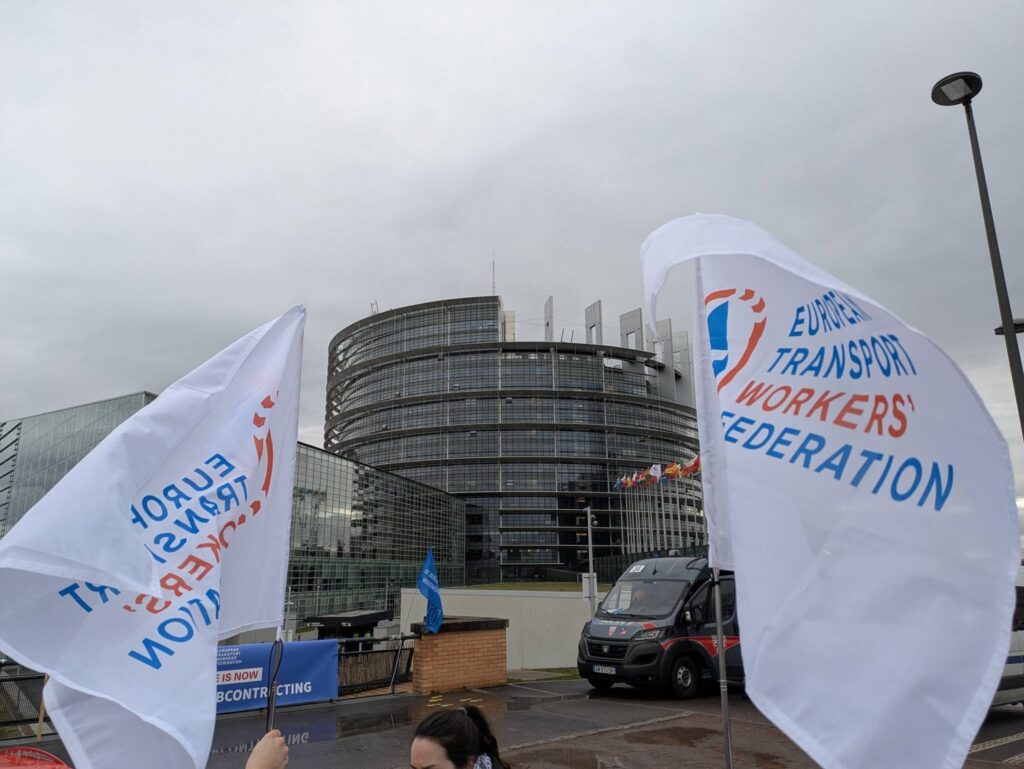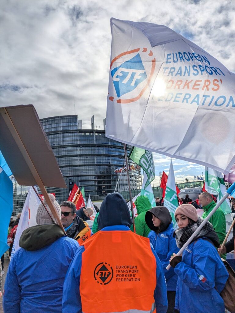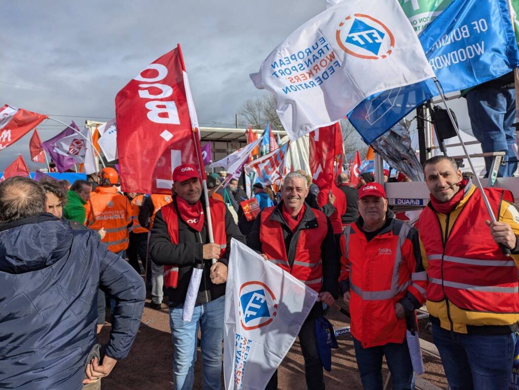 Ponad 800 pracowników i związkowców zebrało się dziś przed Parlamentem Europejskim w Strasburgu na wspólnej demonstracji zorganizowanej przez EFBWW, EFFAT i ETF, trzy europejskie federacje związków zawodowych reprezentujące pracowników z branży budowlanej, rolniczej, przetwórstwa spożywczego, hotelarskiej, usług domowych i transportu.