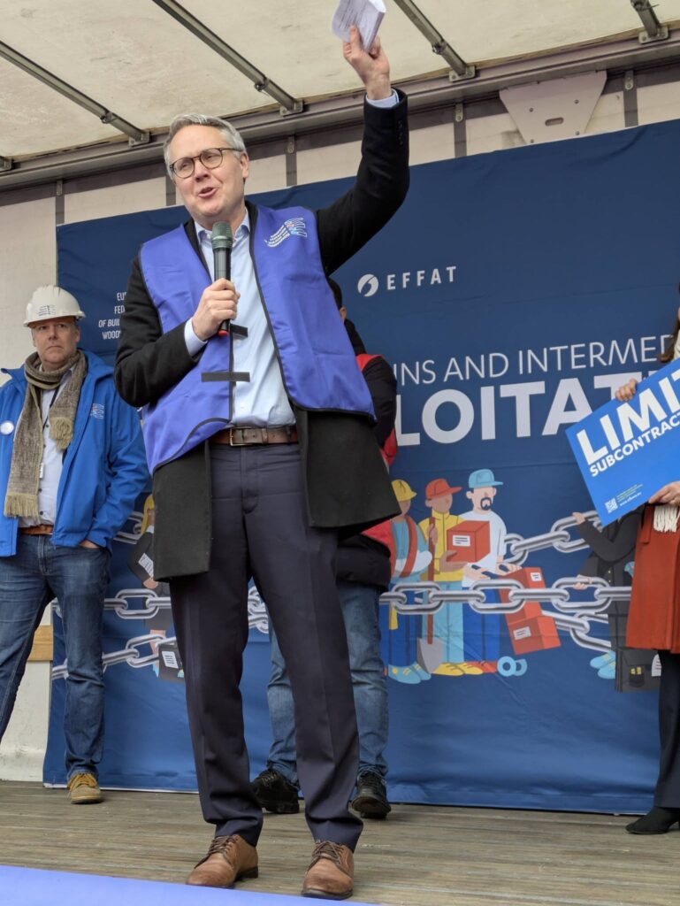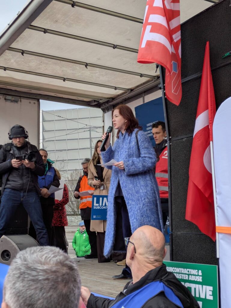 Demonstracja jest następstwem głosowania w Komisji Zatrudnienia i Spraw Socjalnych (EMPL) w grudniu 2025 r., które wysłało silny sygnał polityczny do Komisji Europejskiej o zaproponowaniu dyrektywy UE w sprawie podwykonawstwa i pośrednictwa pracy. W czasach wielkiej niepewności i niestabilności dla ludzi pracy i ich związków zawodowych, dzisiejsze działanie wysyła jasny sygnał europejskim decydentom i rządom krajowym: nadszedł czas, aby położyć kres nadużyciom i wyzyskowi poprzez zapewnienie równego traktowania i uczciwej konkurencji poprzez ambitną dyrektywę UE mającą na celu ograniczenie zlecania i podwykonawstwa, uregulowanie pośrednictwa pracy, w tym zakaz delegowania przez agencje, oraz zwiększenie częstotliwości i skuteczności inspekcji pracy.
